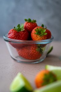 I muddled 10 large strawberries in order to make at least 2 oz of strawberry juice then strain it. If you prefer using a blender that’s fine as well.